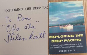 Helen Raitt was not, however, a woman to sit quietly at home while her husband was doing exciting things in the Pacific. If she could not be on the Baird when it was at sea, at least she could be there when it was in port. The first place at which that was feasible was Suva, capital of the Fiji islands, and flying there in 1952 would have been an adventure in its own right. Helen did that, and while in Suva she found a way to get to the Baird’s next port of call, Nuku’alofa, capital of Tonga. That was not a trip that could be made by air, and with ships to and from the islands few and far between, and with very limited accommodation for passengers, Helen wisely booked her passage off the island as soon as she arrived on it, and then set about studying the language and customs of the islanders.