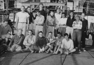 The scientific crew of the Baird, just about to dock in San Diego. Helen Raitt on far right, Ron Mason, far left.